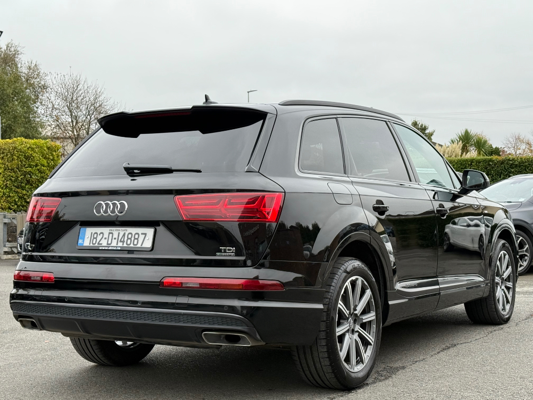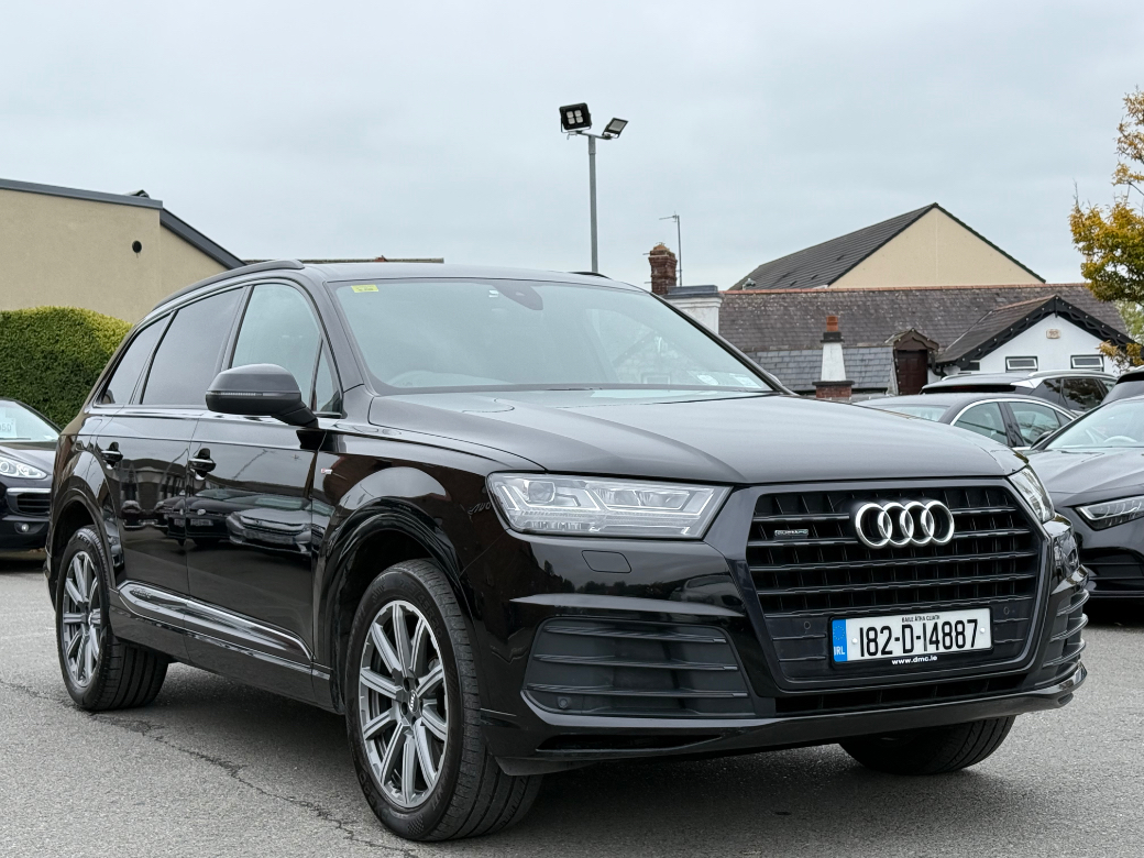 **ONLY TEN MINUTES FROM BLANCHARDSTOWN SHOPPING CENTRE** 2016 Audi Q7 3.0TDI 218BHP S-Line Black Edition Quattro Auto 7 seater in immaculate condition throughout. Original Irish car with an excellent service record and huge spec to include: glass panoramic sunroof, upgraded alloy wheels, air suspension, parking sensors, reverse camera, folding mirrors, rear privacy glass, leather upholstery, heated & electric front seats, sat nav, parking sensors, digital dash, rear climate control, cruise control, sport seats, auto lights & wipers, bluetooth telephone system, media control unit, apple CarPlay, android auto, front centre armrest, abs, esp, isofix, multiple airbags etc. For further information, please contact Aaron on 01 8017777 / 083 1155301