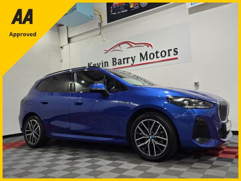 2023 (231) BMW 225e Active Tourer M Sport (Plug In Hybrid) X-Drive Automatic presented in Portimao Blue Metallic with Half Leather & Alcantara Upholstery. One Owner car from new which comes complete with a Full Service Record, Full SIMI History Report and with a Spare Key. Low Annual Road Tax of €140.