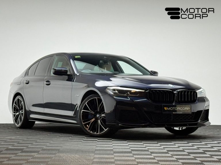This 2021 / 212 BMW 545E is finished in Carbon Black metallic with an ivory white Dakota leather interior, and comes equipped with: