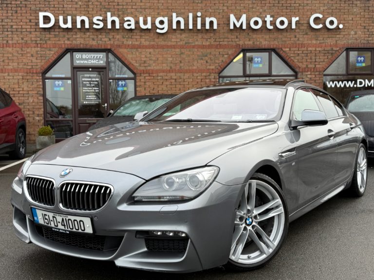 **ONLY TEN MINUTES FROM BLANCHARDSTOWN SHOPPING CENTRE** 2015 BMW 640D M-Sport Auto Gran Coupe 5 seater in excellent condition throughout with an excellent service record, very low kms and huge spec to include: upgraded M-Sport alloy wheels, panoramic sunroof, xenon headlights, front foglights, keyless entry & start, electric windows & mirrors, folding mirrors, parking sensors, full leather upholstery, electric & heated front seats with memory function, ambient lighting, bluetooth telephone system, aluminium dash inlays, cruise control, media control unit, front centre armrest, sport seats, climate control with A/C, leather multifunction sport steering wheel, abs, isofix, esp, multiple airbags etc. For further information, please contact Barry on 01 8017777 / 086 3358879