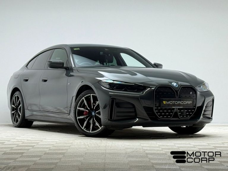 This 2022 / 222 BMW i4 is finished in a Dravit Grey metallic with a full Black / Blue Alcantara Sensatec interior and comes fully equipped with: