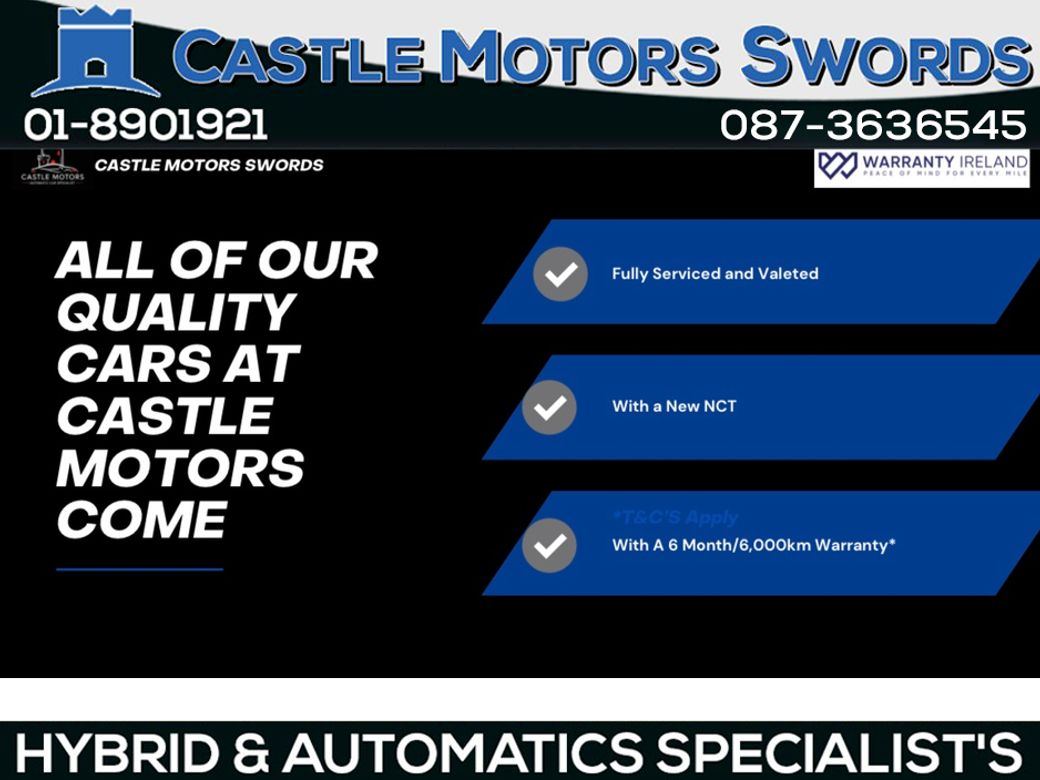 At Castle Motors, we aren’t just selling cars were building relationships. As specialists in high-quality hybrid and automatic vehicles, we offer flexible finance options tailored to your needs whether you’re in full-time employment or have unique circumstances. Each car comes history-checked and professionally valeted, ready for the open road. Visit us today to experience our friendly, no-pressure service and discover why we’ve been a trusted name in Swords for over three decades.