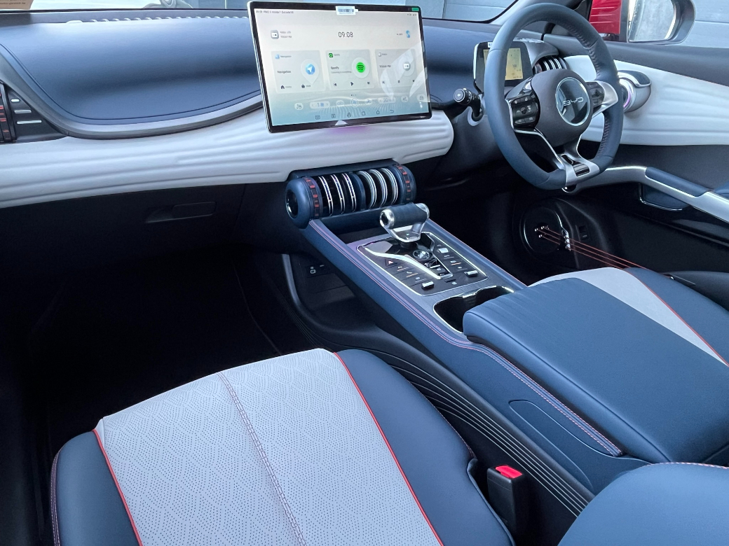 This ATTO 3 Design comes with an extensive array of standard equipment with features including Panoramic electric glass sunroof — Adaptive Cruise Control (ACC) & Intelligent Cruise Control (ICC) with Intelligent Speed Limit Information and Control — Rotatable 15.6-inch Intelligent central touchscreen — 8-speaker audio sound system — Apple Carplay and Android Auto — 8 years free cloud service with 1.5Gb data for infotainment per month for free in first 2 years — Vehicle To Load (VtoL) function (cable extension included) — Wireless phone charging pad — Keyless system entry — 360 degree cameras — Front and rear parking radar sensors — Heated front seats — 6-way electrically adjustable drivers seat with electric lumbar support adjustment — 4-way electrically adjustable passenger seat — Dual zone automatic air conditioning with PM2.5 air purification — Forward Collision Warning — Automatic Emergency Braking — Rear Collision Warning — Front Cross Traffic Alert with front cross traffic braking — Rear Cross Traffic Alert with rear cross traffic braking — Traffic Sign Recognition — Lane Departure Assistant and Lane Departure Warning — Emergency Lane Keeping Assist — Electric tailgate — 18-inch twin colour aluminium alloy wheels — LED headlights with High beam assist — Thermal insulated privacy glass — Remote climate control — Leather, multi-function steering wheel — Front & rear centre armrest — Split folding rear seats (60:40) — Multi-colour ambient interior lighting — Automatic anti-glare interior rear-view mirror — Front passenger’s airbag with deactivation switch — ISOFIX on outer rear seats and front pass seat — Driver Attention Warning — Child Forgetting Detection (CFD) — Software Over-the-Air (OTA) functions — 11kW AC charging power — 150kW DC charging power.