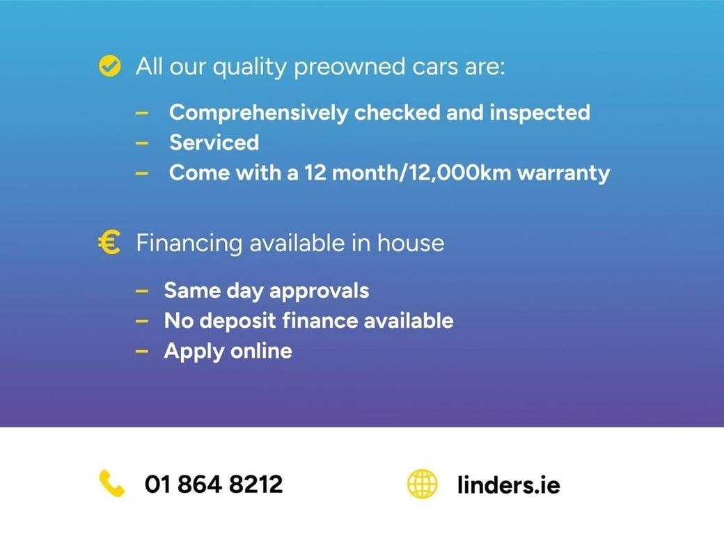 Linders have been serving the people of Dublin/Ireland since 1938, and as one of Irelands longest established companies we are dedicated to total customer care, both in sales and aftersales. We look forward to adding you to our extensive list of satisfied customers, with our large selection of new and used cars we have over 100 cars in stock at any time with a car to suit everyoneโs needs. Don’t see anything you like? We directly source vehicles for customers and have a constant flow of used cars coming in so get in touch with our sales team on 01 8648212 or cars@linders.ie