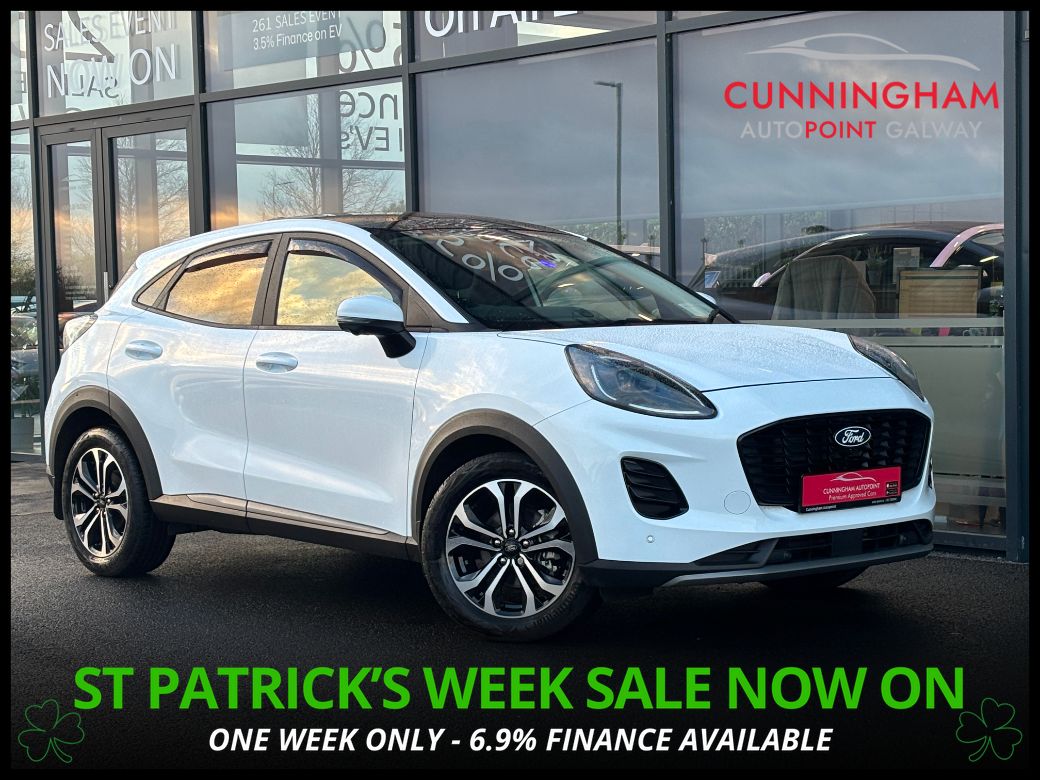 2024 (242) Ford Puma 1.0T Titanium Auto in Frozen White with several factory optional extras.