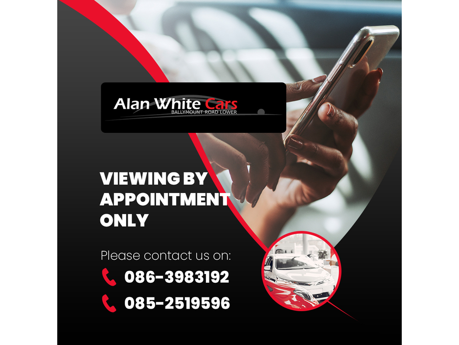THIS CAR HAS A FULL CLEAN CAR HISTORY AND FINANCE REPORT (A COPY AVAILABLE ON REQUEST) TO ENSURE PEACE OF MIND FOR THE CUSTOMER AND TO INSTIL CONFIDENCE WHEN PURCHASING A PRE OWNED VEHICLE. All cars purchased are supplied with a full service, full valet and warranty. For more information or to arrange a viewing/test drive please do not hesitate to contact sales on 01-4298975 or 085-2519596 or email info@alanwhitecars.ie You can also view stock and opening hours on our website www.alanwhitecars.ie