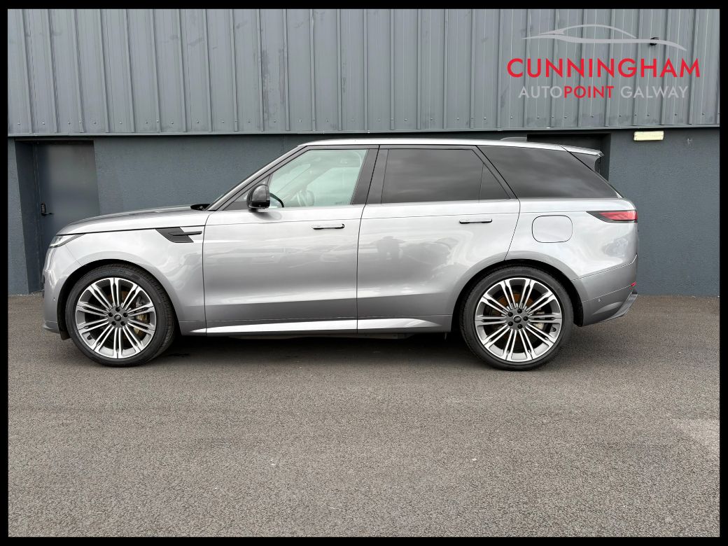 2025 Range Rover Sport P460e HSE Dynamic in Eiger Grey with Light Cloud/Ebony perforated Semi-Aniline leather interior.