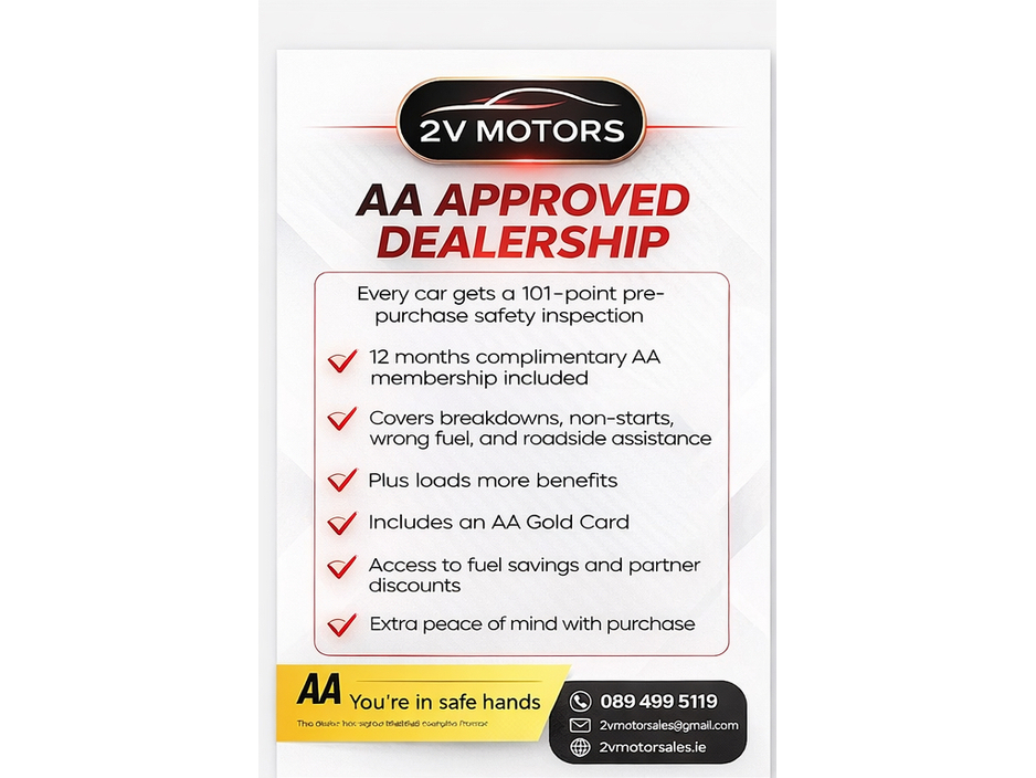 Air Conditioning, Central Locking, CD Player, Electric Windows, Airbag, Alloy Wheels, Multi-function steering wheel, Parking Sensors, Folding rear seats, Isofix, Active Safety Braking / City Brake / Collision Alert, External Devices Connectivity, Cup holders.