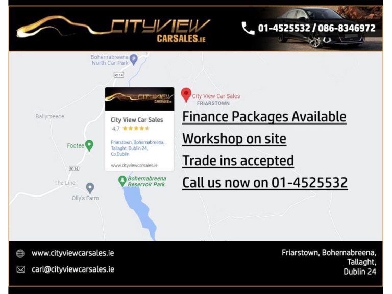 WE ARE AUTHORISED CREDIT INTERMEDIARIES AND FINANCE CAN BE ARRANGED QUICKLY (POOR CREDIT HISTORY OR NO PREVIOUS CREDIT HISTORY IS NOT A PROBLEM). WHY NOT TRY OUR NO OBLIGATION ONLINE FINANCE APPLICATION AT OUR WEBSITE – WWW.CITYVIEWCARSALES.IE
