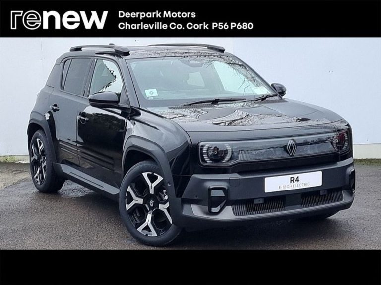 The all new Renault 4 in Techno trim, a fully electric vehicle available to drive away today, we welcome your trade in and arrange finance at excellent rates, contact Deerpark Motor’s Charleville on 063 89344.