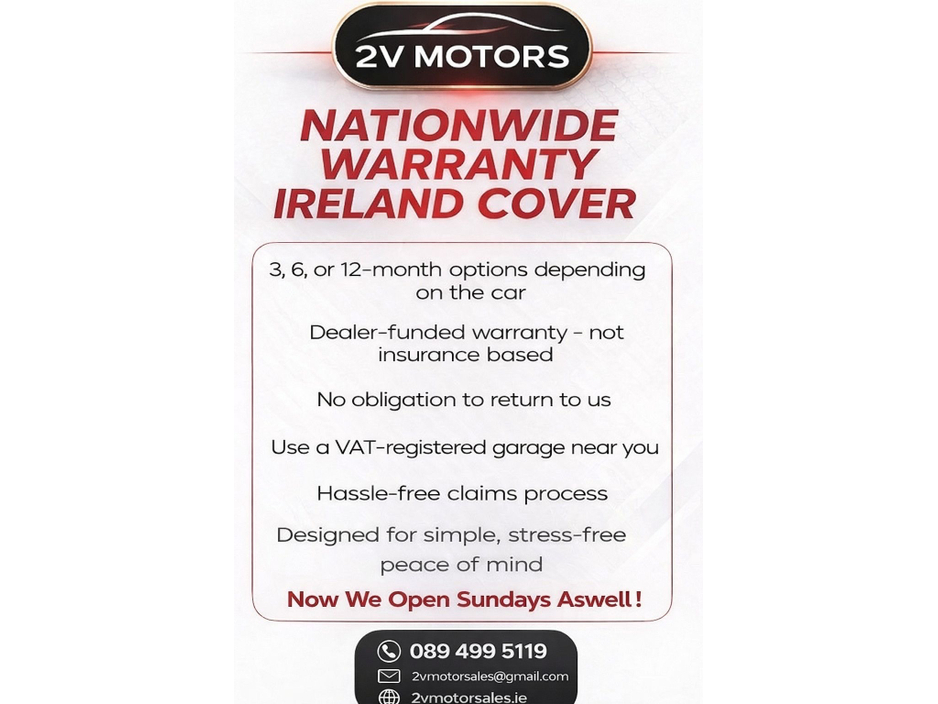 Visit us www.2vmotorsale.ie Visit our showroom Unit 2, The Oaks, Kilreesk Lane, St MargaretS, Dublin 11, K67 Y2T6