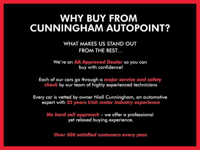 To discuss this car further and / or receive a part exchange valuation please call into our showroom, phone us on 091 383000 or send us an online enquiry — You can also reserve this car for 48 hours on our website — Due to fast stock turnaround we recommend phoning in advance of travelling to check if the car of your choice is available — We are an independently owned and operated dealership and our highly experienced team have over 100 years of combined motor industry experience.