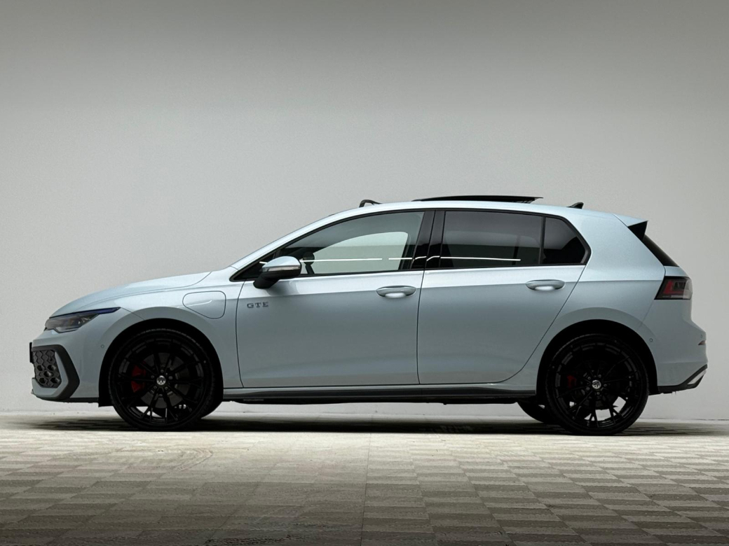 This 2025 Golf GTE is finished in Crystal Ice Blue metallic with a soul black interior, and comes equipped with: